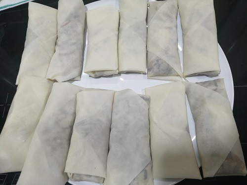 <春巻きの皮で包む>