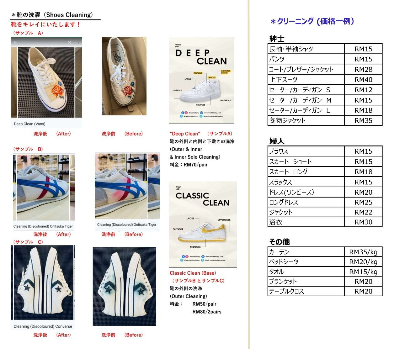 衣料品、靴などのクリーニングを承ります。