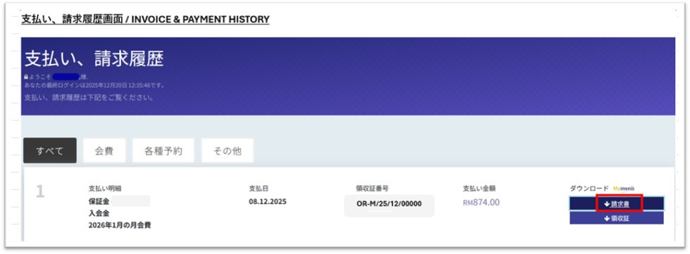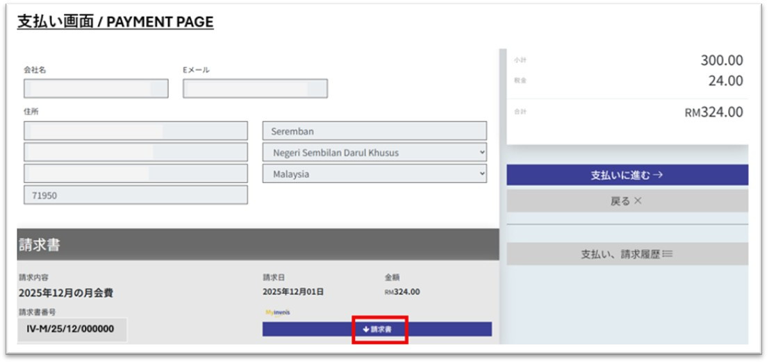 毎月1日にシステムより自動で請求書が発行され、翌日以降に弊会よりマレーシア内国歳入庁(LHDN)へ e-Invoice を送信します。