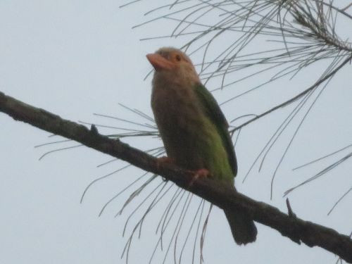 スズメより少し大きい。高い木にいて、木の実や昆虫を食べる。頭が白っぽくて、羽根が緑。目の周りが黄色で、ひょうきんな顔に見える(写真はTaman Rimba Kiara)