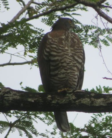 体の大きさは50cmくらい。頭と体が茶色で、目の周りが黄色(写真はFederal Hill)。日本では沖縄にいる