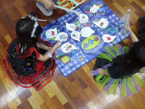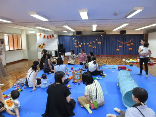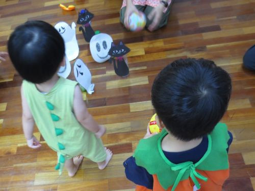 この日のテーマは「ハロウィン」で、仮装して参加するお子様もおられ、保護者の方と写真撮影を楽しんでおられました。また、ボランティアさん手作りの「黒猫ボーリング」で上手にボールを転がしてピンを倒したり、「オバケ釣り」では釣り竿でオバケをたくさん釣って笑顔があふれていました。保護者の方々も話に花を咲かせておられ、にぎやかな雰囲気に終始しました。